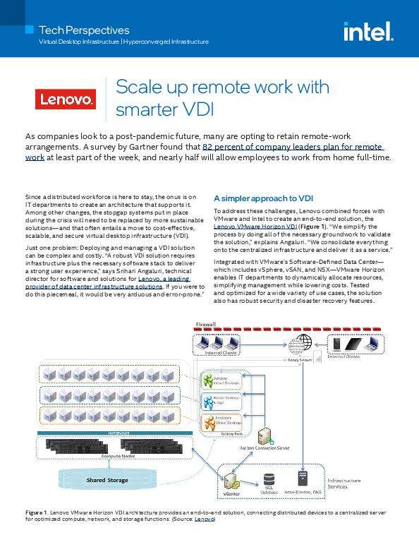 This solution brief introduces Lenovo VMware Horizon VDI, an end-to-end VDI solution that enables IT departments to dynamically allocate resources, simplifying management while lowering costs. Please contact SomethingCool.com LLC for more information about Lenovo VMware Horizon VDI.
