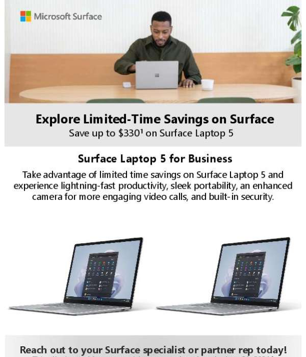 This flyer explain the details on this limited-time Surface Laptop 5 promotion.